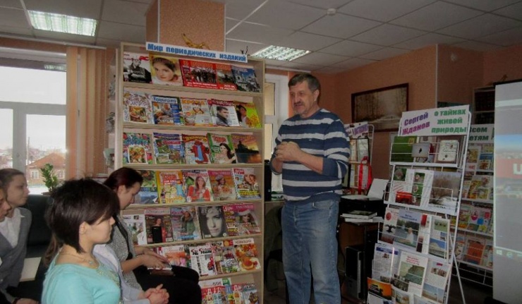 В П-Покровской сельской модельной библиотеке много лет работает клуб интересных встреч, в котором побывали на встрече с читателями оренбургские поэты и писатели, интересные люди села. А 1 Марта, в первый весенний день, у нас был в гостях удивительный человек, известный в Оренбуржье фотограф-художник, писатель, кандидат биологических наук, действительный член Русского географического общества, Сергей Иванович Жданов. Сергей Иванович в нашей библиотеке не в первый раз! Каждый раз, приезжая к нам в гости, на встречу с читателями, он дарит свои книги! К встрече с Сергеем Ивановичем в библиотеке была оформлена книжная выставка «Сергей Жданов: о тайнах живой природы!»