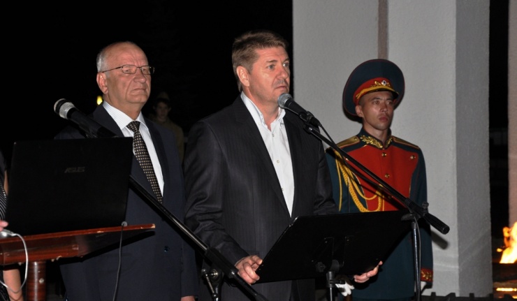 Траурные мероприятия продолжились ранним утром 22 июня - в выставочном комплексе «Салют, Победа!» состоялся митинг и возложение цветов к Вечному огню.