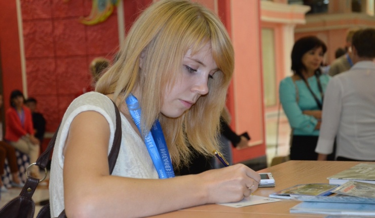 В день открытия Международного образовательного форума «Евразия», Оренбургский филиал Почты России организовал спецгашение выпущенной к этому событию почтовой открытки. На карточке изображена эмблема форума, разработанная организаторами «Евразии».