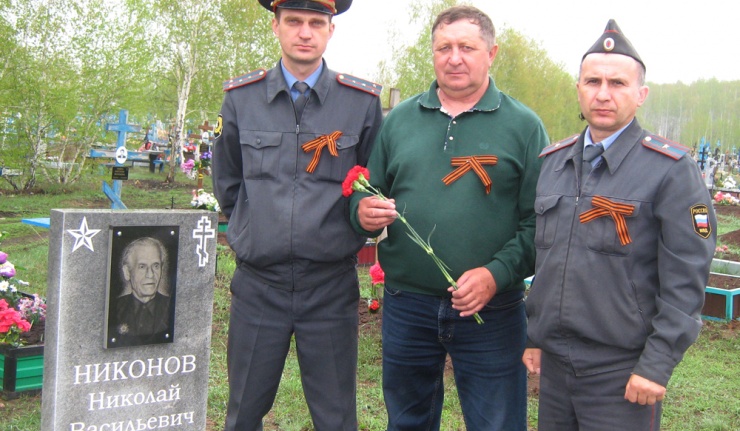 Начальник Шарлыкского отдела вневедомственной охраны Виктор Дударев, начальник ПЦО Шарлыкского ОВО Дмитрий Печёнкин и председатель Общественного совета при МОМВД России «Шарлыкский» в преддверии празднования 70-й годовщины Победы в Великой Отечественной войне 1941 – 1945 годов, возложили цветы к могиле бывшего сотрудника ОВД – ветерана ВОВ – Никонова Николая Васильевича, умершего 6 марта 2012 года. Ветеран захоронен на кладбище в селе Шарлык.