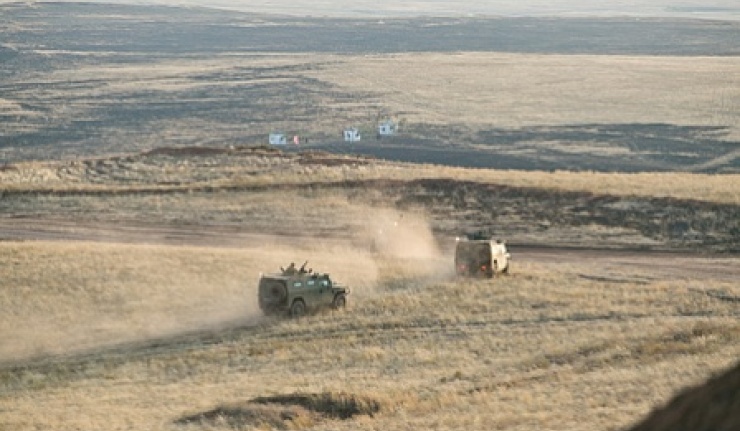 На полигоне Донгузский, по замыслу эпизода учений, противник применил различные тактические приемы - двигался пешком, на автомобилях, использовал легкие летательные аппараты - дельтапланы и Ил-76 (военно-транспортный самолет).