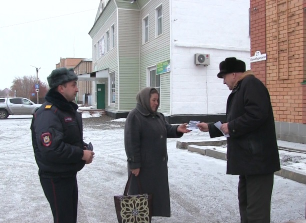 2 декабря 2015 года в городе Кувандыке старший инспектор направления охраны общественного порядка Евгений Милин, командир отделения патрульно-постовой службы Олег Шляхов и член Общественного совета полиции Сергей Стрельников провели информационно - пропагандистскую акцию «Осторожно - мошенники!», предупредив граждан о фактах мошенничества и вручив информационные памятки.