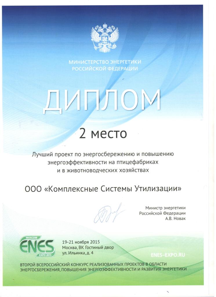 По итогам всероссийского конкурса «Moscow ENES expo-2015» ООО "КомплеСУ" заняло второе место в номинации «Лучший проект по энергосбережению и повышению энергоэффективности на птицефабриках и в животноводческих хозяйствах».