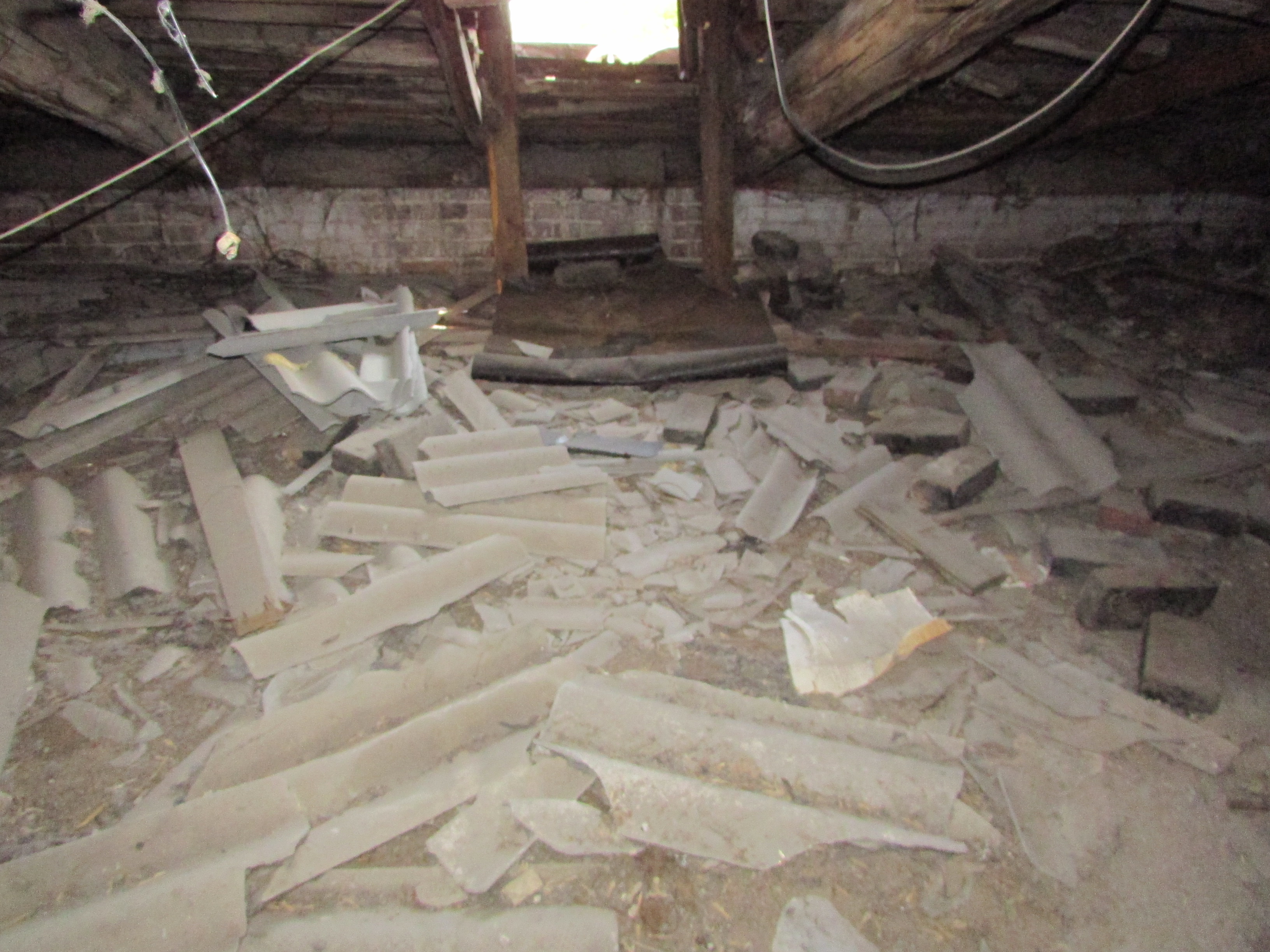 При обследовании данного дома специалистами Фонда при участии представителей управляющей компании, УЖКХ г. Оренбурга установлено, что вследствие систематических протечек кровли велика вероятность гниения деревянных перекрытий. А учитывая возраст дома (сдан в 1929 году) и некачественное техническое обслуживание, нельзя исключить опасность обрушения потолочных перекрытий в процессе производства работ по капитальному ремонту.