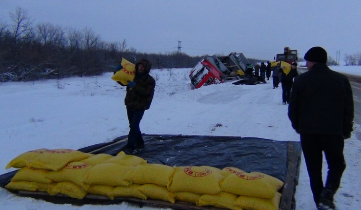Прибывшие на место происшествия сотрудники ОМВД России по Переволоцкому району приняли участие в ликвидации последствий ДТП. Полицейские помогли сначала выгрузить мешки с фасолью, а затем освободить из снежного плена грузовой автомобиль.