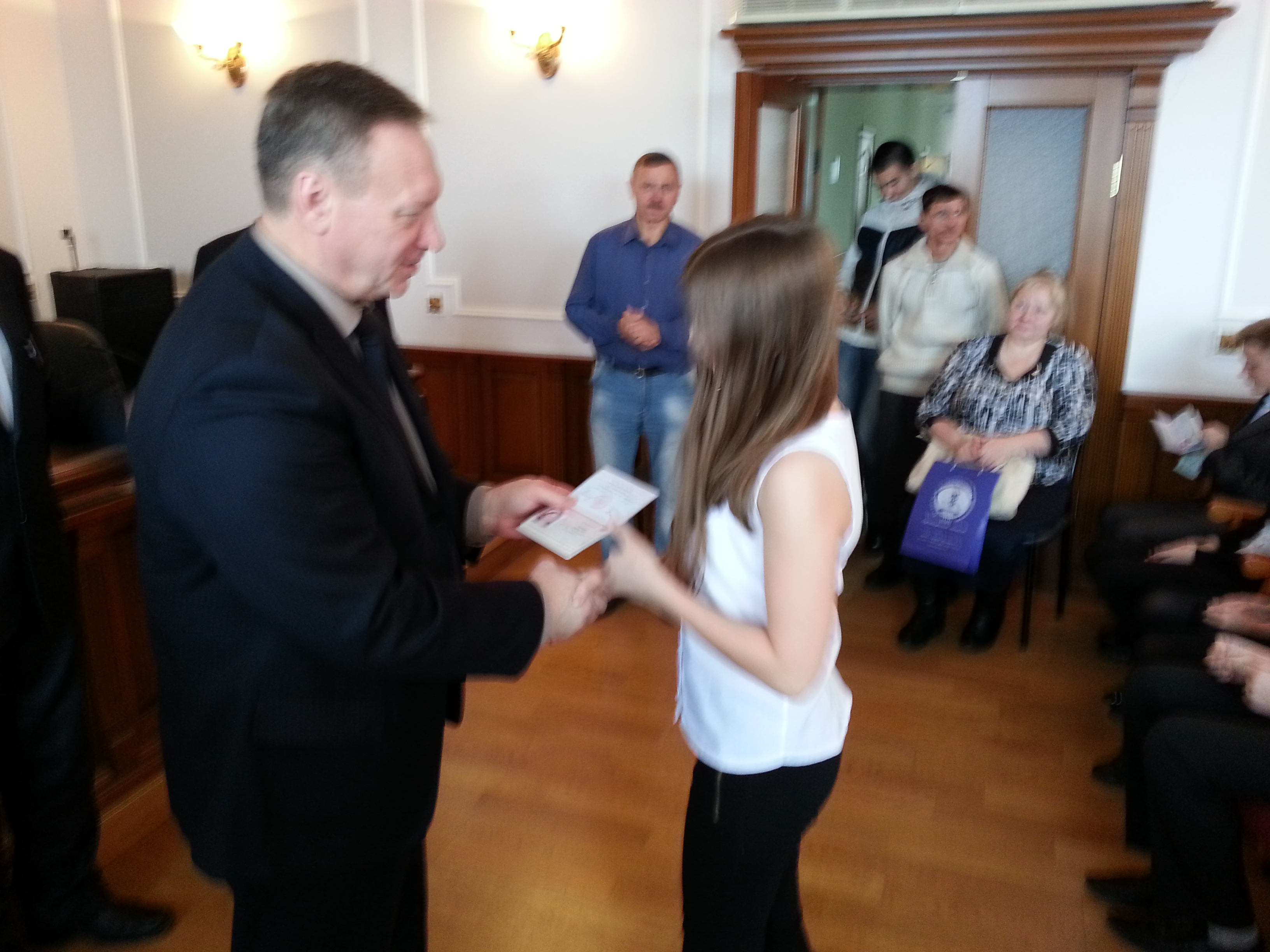 Первые паспорта ребятам вручали: Председатель Общественно-консультативного совета при УФМС России по Оренбургской области, член общественной палаты Российской Федерации Николай Петрович Науменко Председатель Совета ветеранов УФМС России по Оренбургской области Геннадий Иванович Забелин, Вице-президент Союза «Торгово-промышленная палата Оренбургской области» Алексей Вячеславович Ушаков.
