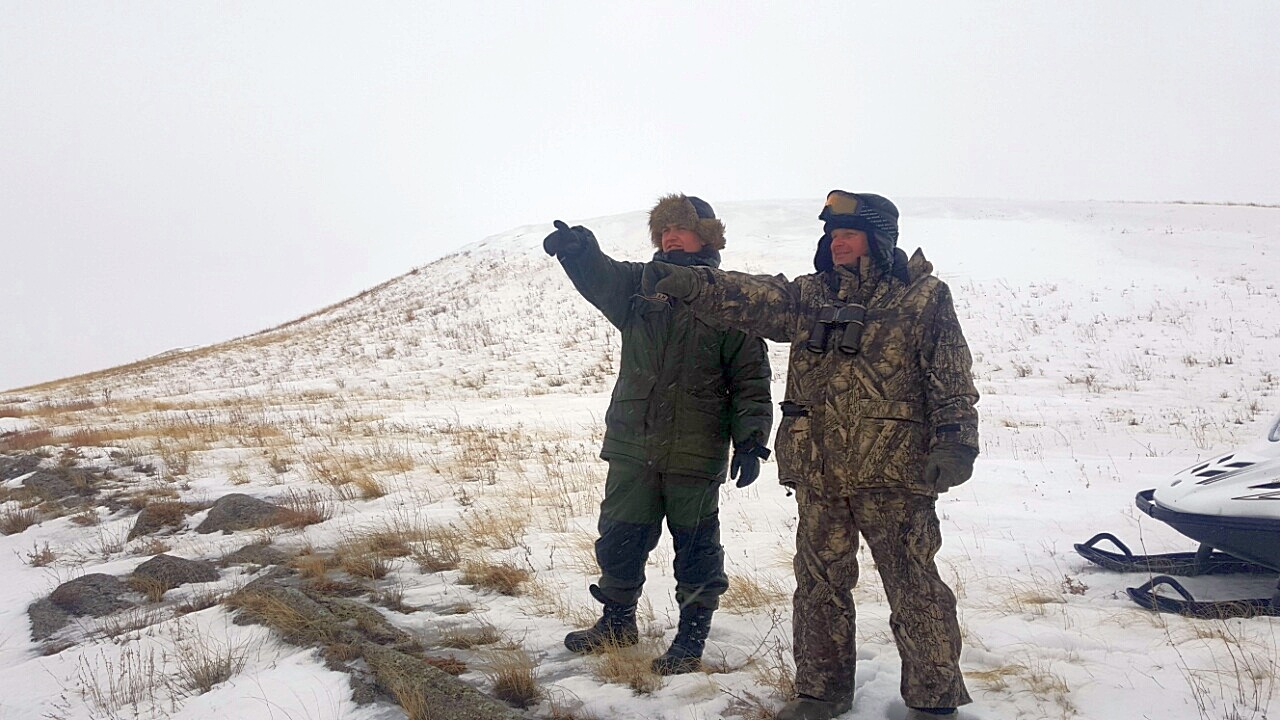 Помимо оперативной инспекторам нужно было выполнить и небольшую научную работу по измерению глубины снежного покрова. Однако, с погодой в этом плане не повезло. Вопреки прогнозам пошел сильный дождь с мокрым снегом, и сугробы, которые буквально шесть дней назад на одной из точек достигали глубины 41 сантиметр, просели почти вдвое. Местами снег полностью сошел. При таких погодных условиях обследовать весь участок «Айтуарская степь» на снегоходах было физически невозможно. За день инспекторы проехали 7 километров пересеченного рельефа и по завершении работ в охранной зоне в пойме реки вернулись в Оренбург.