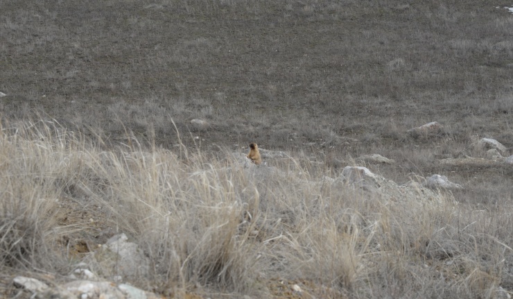 В Предуральской степи, на участке заповедника «Оренбургский», ещё лежит снег, но уже начали просыпаться от спячки сурки. Первого заметили ещё 13 марта, но за пределами заповедной территории, недалеко от посёлка Сазан. Зато целая колония была найдена уже на нашем участке всего в километре к югу от кордона – 31 марта на поверхности земли были замечены одновременно три сурка. Они не особо испугались людей – подпустили метров на 30, сидели около нор, пересвистывались и сердито дёргали хвостами. Колония располагается в урочище Колубай, на крутом склоне южной экспозиции. Там почва не только очистилась от снега, но и немного даже прогрелась за несколько солнечных мартовских дней. Впрочем, не все норы были открыты, некоторые ещё запечатаны, зато около открытых видны следы бурных строительных работ – сурки прилежно ремонтируют своё жилище после зимы.