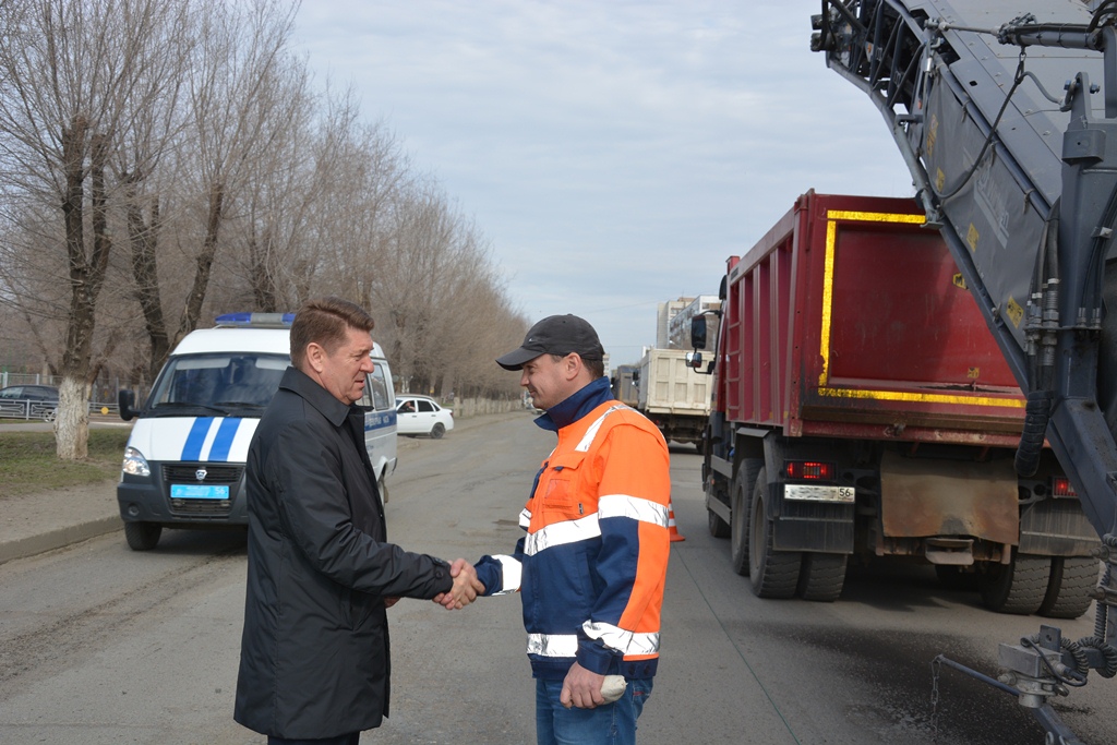 Председатель Оренбургского городского Совета Андрей Шевченко вместе с заместителем начальника управления строительства и дорожного хозяйства администрации Оренбурга Олегом Жерельевым проверили, как идут работы по ремонту городских дорог.