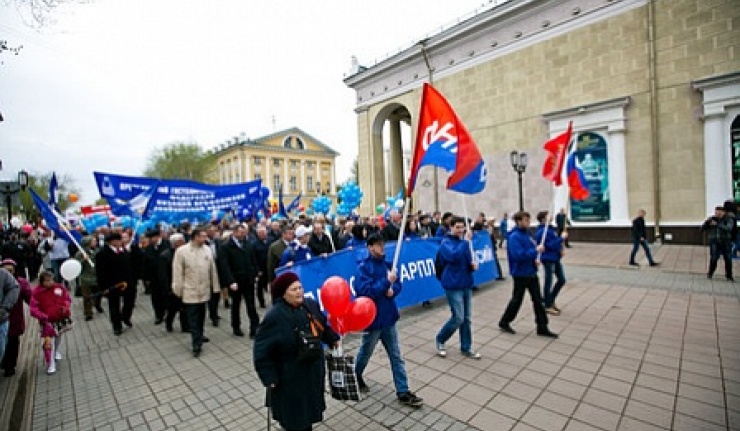 Представители трудовых коллективов, ведущих промышленных предприятий, учреждений города, спортивных обществ, профсоюзных организаций, политических партий, ветераны труда и студенты под торжественный марш в исполнении духового оркестра проследовали на Пушкинский бульвар, где состоялся праздничный митинг.