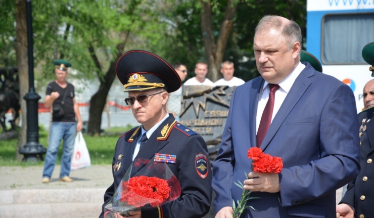 Участники, почтили память погибших при исполнении служебных обязанностей пограничников