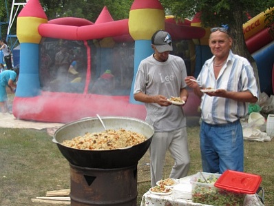 В программе праздничных мероприятий были национальные песни и танцы, работа подворий, а также скачки, национальная борьба куреш, традиционные подвижные национальные игры, аттракционы для детей.