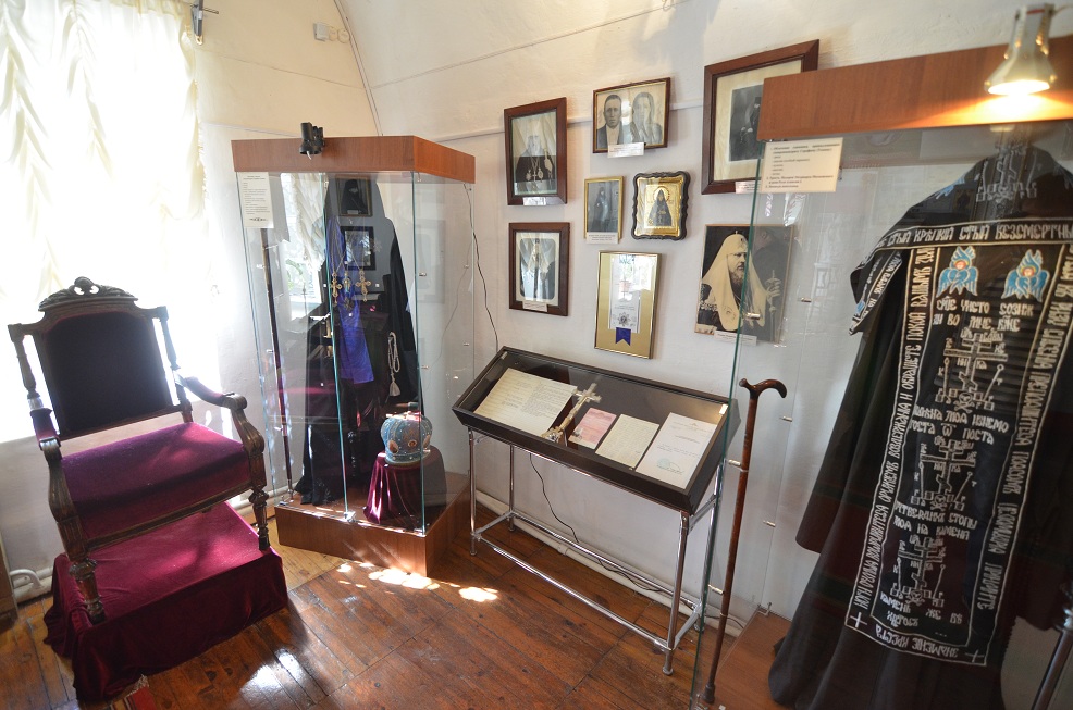 Данная выставка музея уникальна тем, что в ее экспозиции собрано и представлено церковное облачение Владыки Леонтия: в будни и в праздники, великая схима – облачение схиархимандрита Серафима, их рукописи – дневники и проповеди. Не каждый священник может одновременно надевать сразу три креста. Схиархимандрит Серафим (Томин) имел такое право.