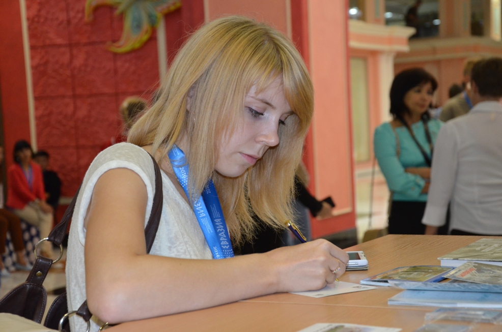 В день открытия Международного образовательного форума «Евразия», Оренбургский филиал Почты России организовал спецгашение выпущенной к этому событию почтовой открытки. На карточке изображена эмблема форума, разработанная организаторами «Евразии».