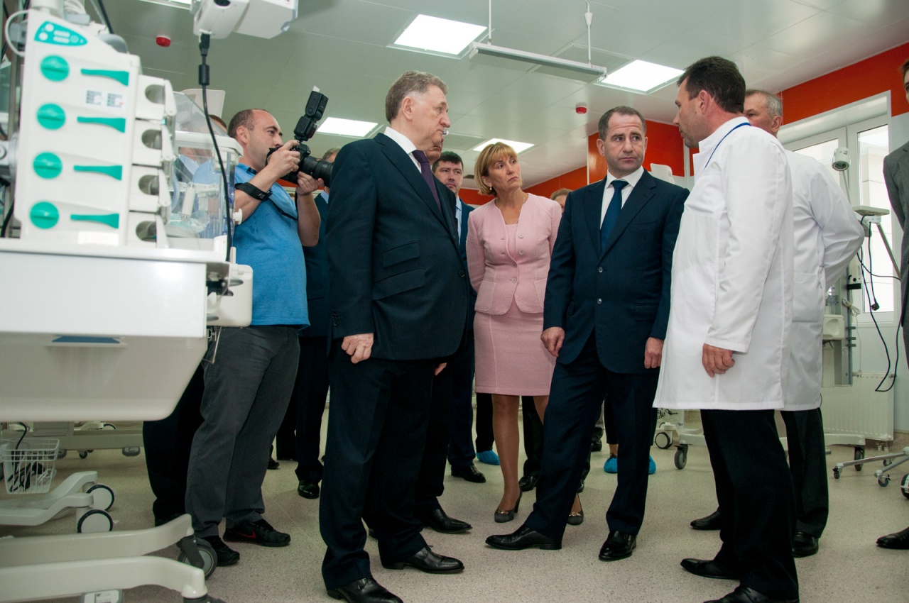 В этот же день полпред Президента России посетил в Оренбурге областной онкологический диспансер. Для региона вопрос оказания медицинской помощи онкобольным является актуальным – показатели заболеваемости и смертности в Оренбургской области выше, чем в среднем по России и ПФО. До недавнего времени диспансер не соответствовал современным санитарным нормам, что снижало качество оказания медицинской помощи. В 2013-2015 гг. на условиях государственно-частного партнерства проведена реконструкция учреждения, а в этом году завершены строительные работы в консультативной поликлинике диспансера. Помимо ремонта закуплено современное медоборудование на сумму более 50 млн. рублей. В результате удалось значительно повысить доступность и качество онкологической помощи населению. Площадь поликлиники была увеличена более чем в два раза, число принимаемых пациентов выросло до 500 человек в день. Также открылись отделения амбулаторной химиотерапии и амбулаторной хирургии, увеличилось количество работающих специалистов-онкологов.