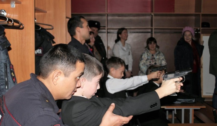 Школьникам показали как проходят трудовые будни полицейских, где находится дежурная часть и дали пострелять из пистолета аналогичный пистолету Макарова по лазерным мишеням. Ученики посидели за рулем патрульного автомобиля и даже включали сирены. Полицейские продемонстрировали приемы борьбы, которыми пользуются при несении службы для обезвреживания противника.