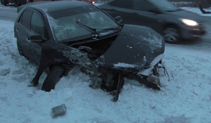 Сотрудники ГИБДД выясняют обстоятельства ДТП с участием легкового и грузового автомобиля, которое произошло сегодня около 8 часов утра по проспекту Заводскому на выезде из города Новотроицка.