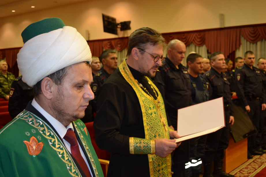 прочитал молитву и вручил православным сотрудникам Иконы и молитвослов. Член общественного совета при УМВД председатель Духовного Управления Мусульман Оренбургской области - Альфит хазрат Шарипов пожелал удачной командировки и обратил внимание, что защищать Родину это конституционный долг каждого гражданина. Он также прочитал молитву и вручил всем желающим молитвенник на каждый день.