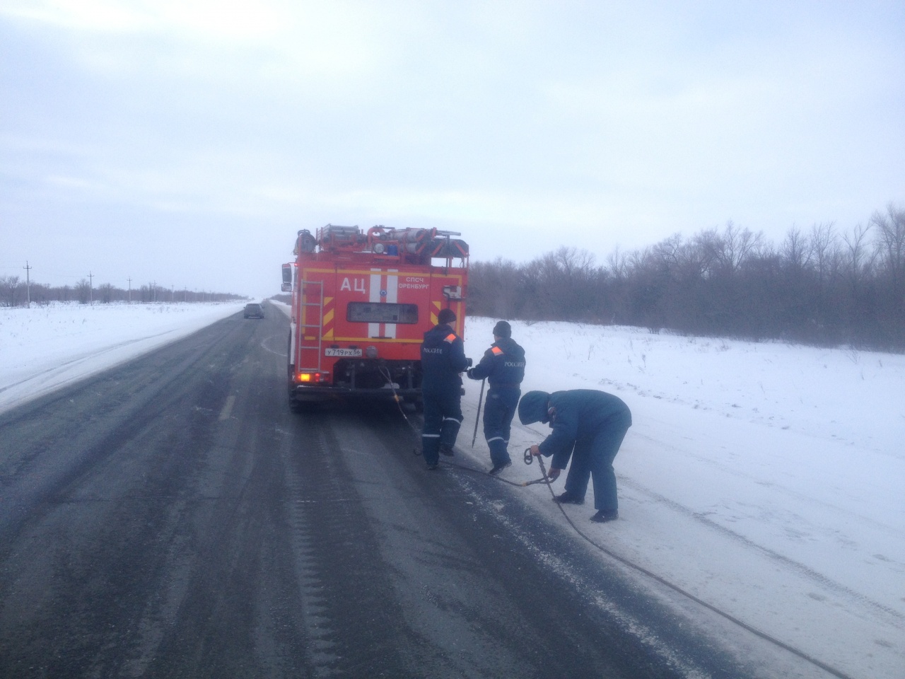 Совершая марш "Поворот на Краснощёково - Оренбург" аэромобильная группировка ГУ МЧС России по Оренбургской области оказала практическую помощь очередной жертве кювета. На 50-м км трассы Оренбург-Орск съехал в кювет отечественный автомобиль, в котором находились двое взрослых (мужчина и женищина) и девочка-подросток. При помощи пожарного автомобиля высокой проходимости легковушка была отбуксирована на дорожное полотно и продолжила путь своим ходом. На момент работы пожарно-спасательного подразделения медицинская помощь никому не требовалась.