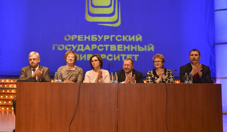 Во второй половине дня в большом зале Студенческого центра ОГУ - ДК «Россия» состоялось объединенное заседание ученого совета университета и ученых советов факультетов и институтов. Его открыла ректор Жанна Ермакова. Она поздравила собравшихся с двойным праздником и отметила, что университет – это большой корабль, и каким будет его путь, зависит от всех присутствующих.