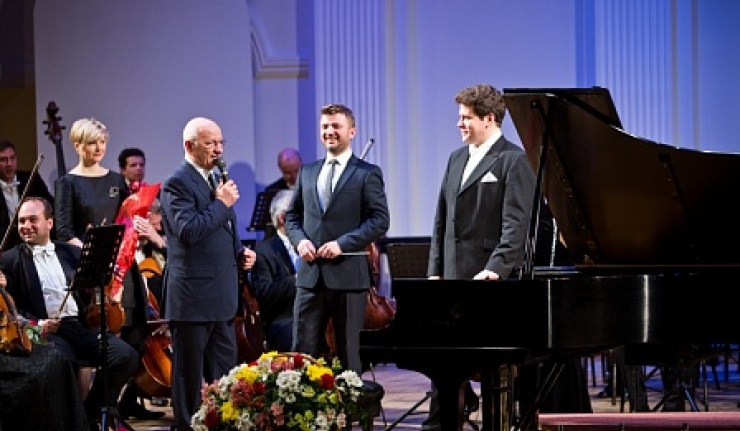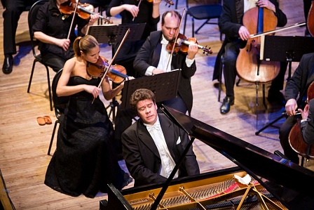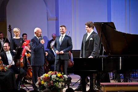 Вечером известные фортепианные концерты Моцарта и Бетховена исполнил пианист, лауреат Государственной премии РФ, член Президиума Совета по культуре при Президенте РФ, народный артист России Денис Мацуев. Аккомпанировал мэтру Российский национальный оркестр.