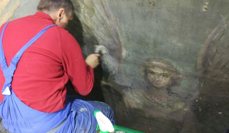Художникам предстоит спасти росписи старинной церкви. Буквально каждый квадратный миллиметр штукатурного основания и красочного слоя необходимо укрепить, а фрески бережно очистить от копоти и грязи.