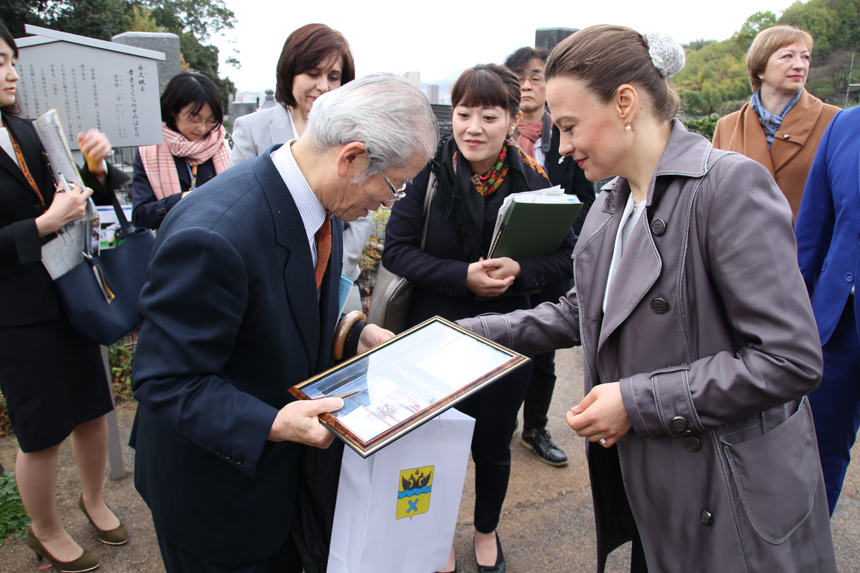 В этот же день прошла церемония возложения цветов к могиле русских военнопленных времен русско-японской войны 1904-1905 годов. Торжественное мероприятие прошло в городе Мацуяма префектуры Эхимэ (Япония). Сотрудники аппарата военного атташе выставили у могилы русских военнопленных почетный караул, а участники церемонии возложили венки и букеты.
