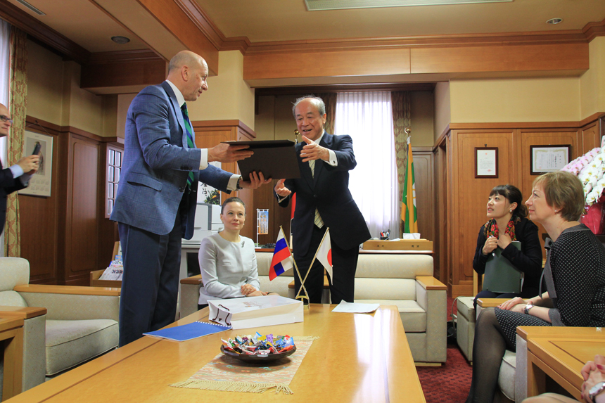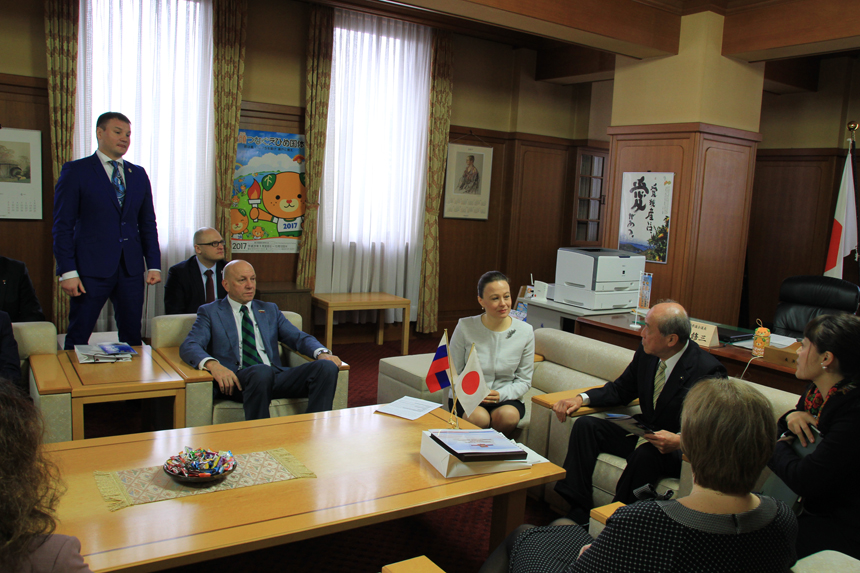 Представителей нашего региона принял Губернатор префектуры Эхимэ господин Токихиро Накамура. Министр культуры и внешних связей Оренбургской области Евгения Шевченко передала заверения доброго расположения жителям префектуры Эхимэ от Губернатора Оренбургской области Юрия Берга.
