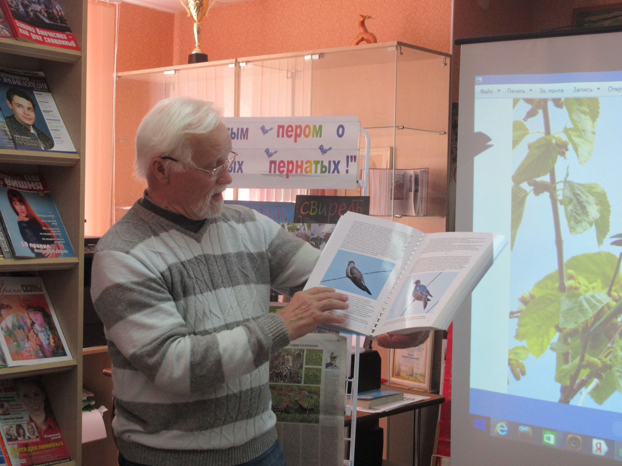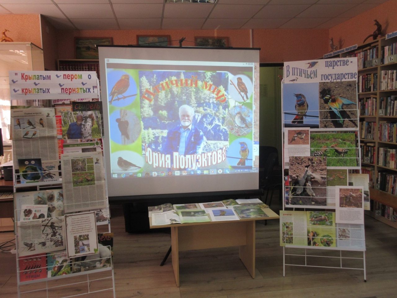 В заключении встречи был продемонстрирован видеоролик "Птичий мир Юрия Полуэктова", созданный Трифоновой О.Н., библиотекарем нашей библиотеки.