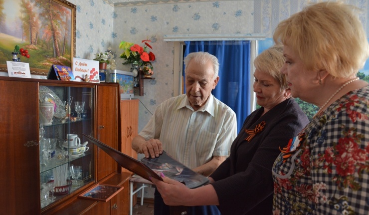 В этот день добрые пожелания и подарки принимали участники войны Стукалов Михаил Викторович, Алексей Васильевич Агапов и труженица тыла Теплова Агния Алексеевна.