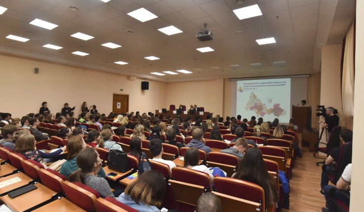 С сообщением «Актуальные вопросы ВИЧ-инфекции» выступила врач по гигиеническому воспитанию Оренбургского центра профилактики и борьбы со СПИД Ирина Журавлева. Она привела статистические данные по распространению инфекции, которые не могли не обеспокоить слушателей. В частности, врач сообщила, что Оренбургская область по пораженности населения многие годы стабильно входит в первую десятку неблагополучных в этом отношении регионов России, а по данным 2016-го находится на седьмом месте. Ирина Владимировна сообщила о возможной на сегодняшней день терапии инфицированных, которая позволяет им дожить до старости, но напомнила, что это заболевание в настоящее время неизлечимо, поэтому огромное значение имеет профилактика ВИЧ-инфекции. Студенты посмотрели фильм «Простые решения», предоставленный Оренбургским центром профилактики и борьбы со СПИД.