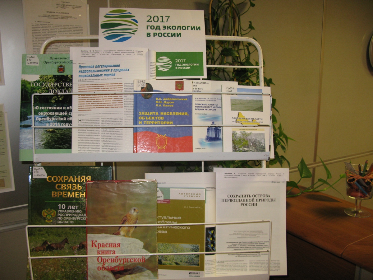Кроме того, в рамках акции будет работать выставка книг и фотографий, посвященных экологическим проблемам, откроется фотовыставка «Природные памятники на карте Оренбуржья». На выставке будут представлены законодательные акты, принятые в природоохранной сфере, издания и периодика, посвященная глобальным экологическим проблемам: вырубке лесов, загрязнению мусором, радиоактивными отходами водного фонда, атмосферы, отравлению почвы.