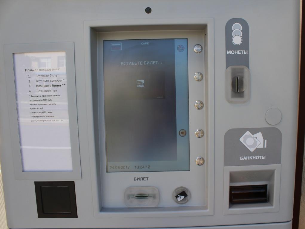 Для того, чтобы шлагбаум открылся, на въездной стойке нужно нажать кнопку «Билет». Выданный парковочный билет необходимо сохранять, т.к. на нём указано время въезда и именно по нему будет происходить оплата в случае, если время нахождения на парковке превышает 30 минут. Оплата производится в любой из двух автоматических касс, на которые нанесена надпись «Оплата парковки». Чек об оплате так же необходимо сохранять до выезда с автопарковки. При выезде водитель помещает парковочный билет (на билете стрелками указано направление) в соответствующую ячейку любой из выездных стоек и, в случае своевременной и правильной оплаты, шлагбаум срабатывает. Находясь на территории парковочной зоны, можно занимать любые свободные места, соблюдать правила дорожного движения и требования дорожных знаков.