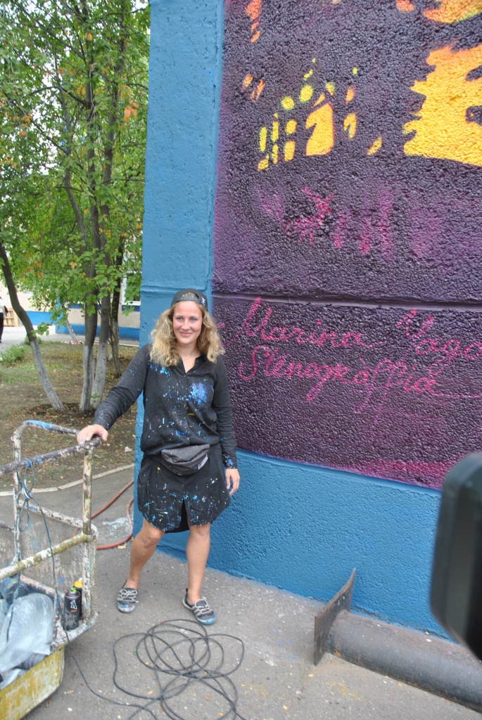 - Оренбург всегда встречает нас с особой теплотой. Я приятно удивлена, что Глава города лично приехал поздравить нас с завершением проекта, – отметила Марина Ягода. – Я изобразила на здании лицея двух учеников. На правой части граффити – парень, увлеченный техническими и математическими науками. На другой части – изображена девушка, увлеченная гуманитарными науками. Это встреча женского и мужского, гуманитарного и технического начал, которые начинаются в нашей жизни именно в школе. На создание этой работы у меня ушло 3 дня, хотя планировала ее рисовать от 5 до 8. Хорошая погода позволила краске быстро сохнуть, в результате чего удалось завершить работы раньше. Во время процесса я использовала около 100 баллончиков краски для граффити и около 30 литров фасадной краски.