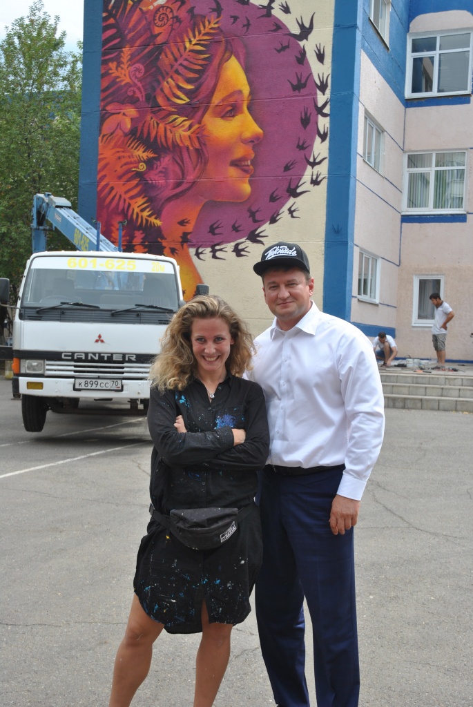 В завершение Марина Ягода и Евгений Арапов по традиции фестиваля «Стенограффия» сделали несколько общих фото, среди которых по просьбе художника одно было неформальным.