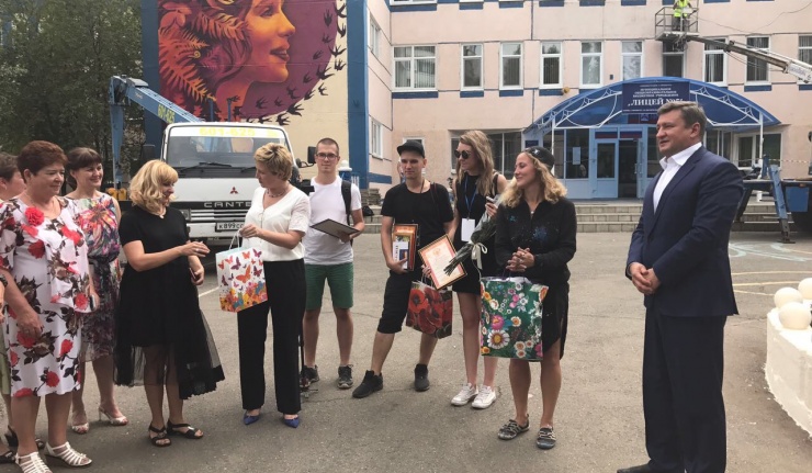 Директор лицея № 5, депутат Оренбургского городского Совета Елена Иванова вручила художнику благодарность и подчеркнула: «Это изображение – самый настоящий подарок не только для лицеистов, преподавателей и родителей, но и для всех жителей близлежащих домов. В темное время суток изображения на лицее будут освещаться, что добавит арт-объекту еще большую оригинальность».