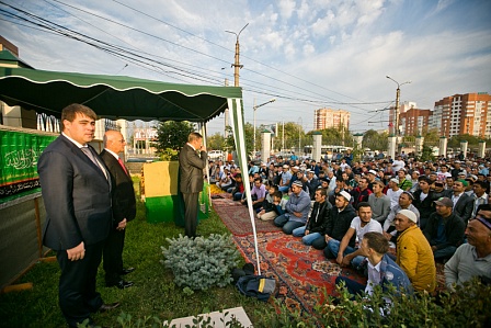 Также мусульман перед праздничной молитвой поздравил глава Оренбурга Евгений Арапов.
