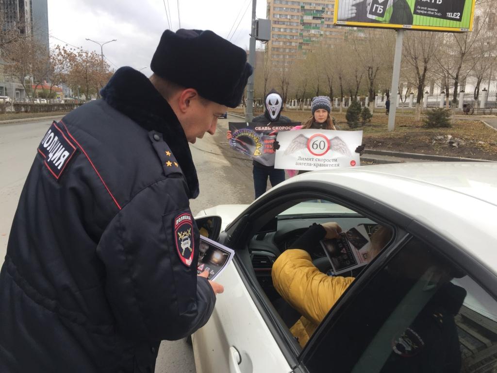 На одной из оживленных улиц города Оренбурга сотрудники Госавтоинспекции останавливали автомобили, а ребята из «Сектора безопасности» встречали водителей в необычайных образах «Ангела» и «Смерти». С плакатами в руках «Сбавь скорость, иначе она убьет тебя и окружающих!», «60 - лимит скорости ангела хранителя» юные участники дорожного движения призывали о необходимости быть внимательными и осторожными на дороге, соблюдать установленный скоростной режим, дистанцию между транспортными средствами, не прибегать к резкому увеличению скорости или торможению и не делать резких маневров.