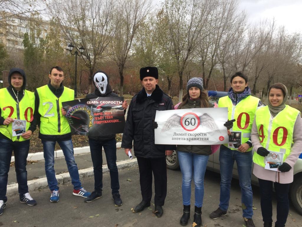 1 ноября 2017 года сотрудниками ОГИБДД МУ МВД России «Оренбургское» совместно с представителями молодежной организации «Сектор безопасности» было проведено профилактическое мероприятие в рамках информационно-пропагандистской кампании «Сбавь скорость! Сохрани жизнь!».