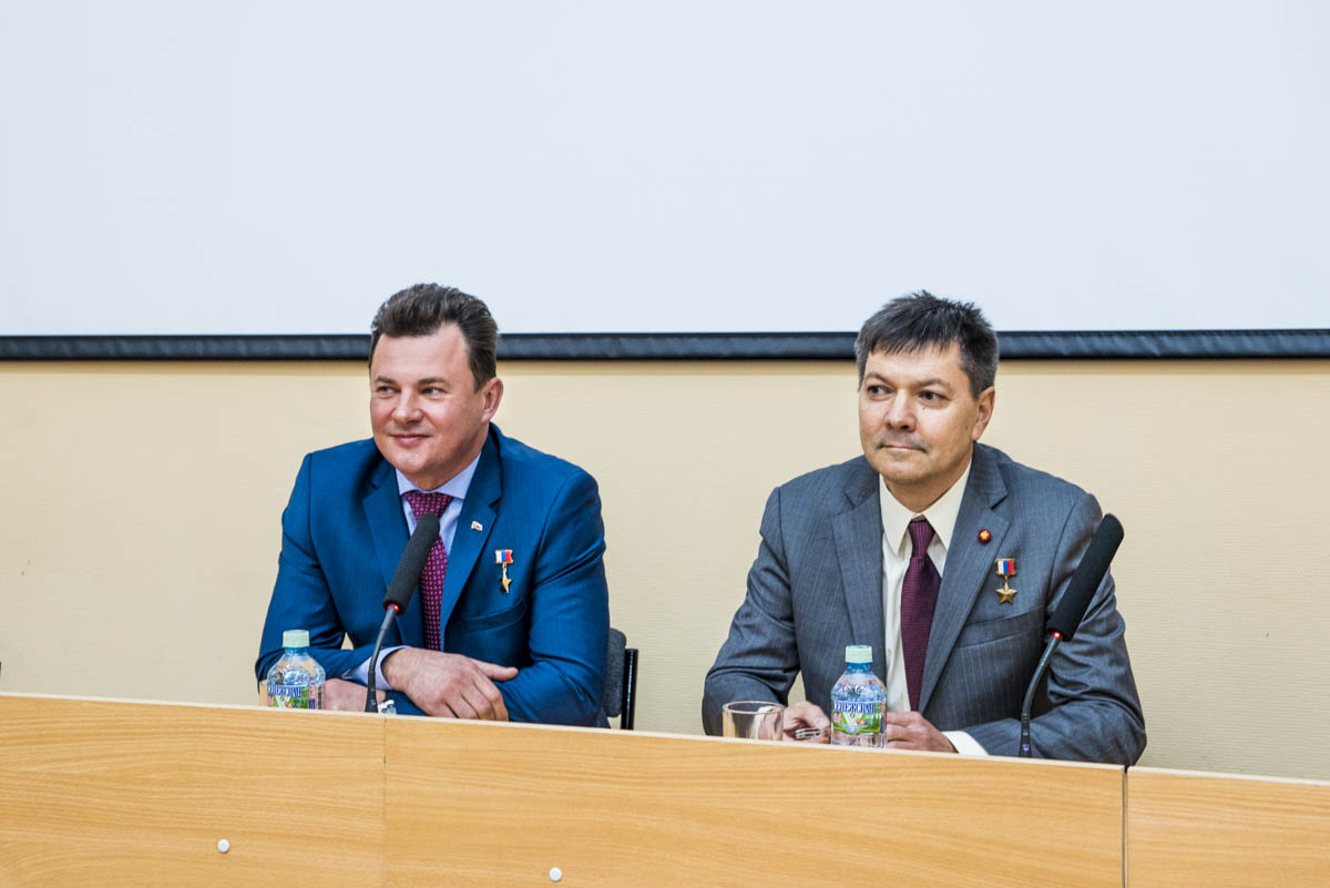 1 ноября в Оренбургском госуниверситете прошла встреча летчиков-космонавтов, героев России Романа Романенко и Олега Кононенко со студентами вуза. Более 100 обучающихся, большую часть которых составили представители Аэрокосмического института ОГУ, долго ждали этой встречи. Герои России, о которых они знают не понаслышке и чью биографию изучают в университете, в этот день ответили на все их вопросы. Открыл встречу проректор по социальной и воспитательной работе ОГУ Сергей Семенов, он поблагодарил гостей за визит и за возможность узнать из первых уст ценную для студентов информацию о космосе.