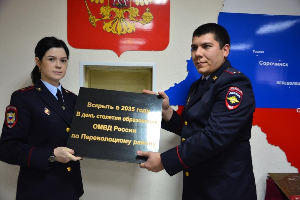 Предполагается, что послание будет вскрыто на 100-летие со дня образования ОМВД России по Переволоцкому району в 2035 году.