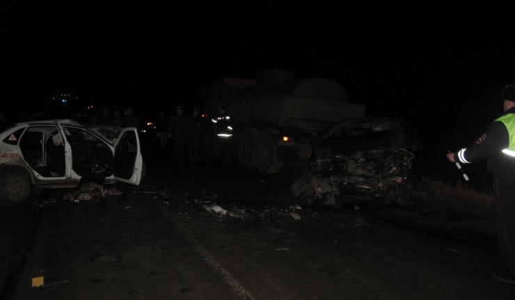 Сотрудниками полиции устанавливаются обстоятельства дорожно-транспортного происшествия, произошедшего на 4 километре автодороги «Гай-Ириклинский». Предварительно установлено, что 32-летний житель поселка Вишневое, управляя автомобилем «ВАЗ-2108», не справился с управлением и допустил выезд на полосу встречного движения, где допустил столкновение с автомобилем «ВАЗ-2110» под управлением 38 –летнего жителя поселка Энергетик. В результате ДТП водители обоих автомобилей, а также два пассажира «ВАЗ-2110» от полученных травм скончались на месте происшествия.