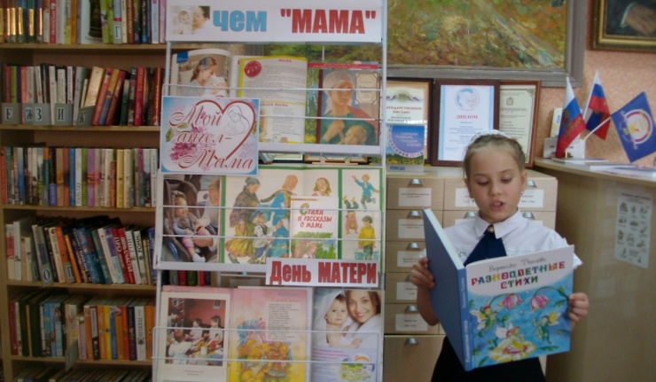 Акция проходила в библиотеке с 21 ноября по 25 ноября 2017 года. Цель акции: Воспитывать чувство любви, уважения к самому близкому и родному человеку – маме, на примере лучших произведений отечественной литературы .