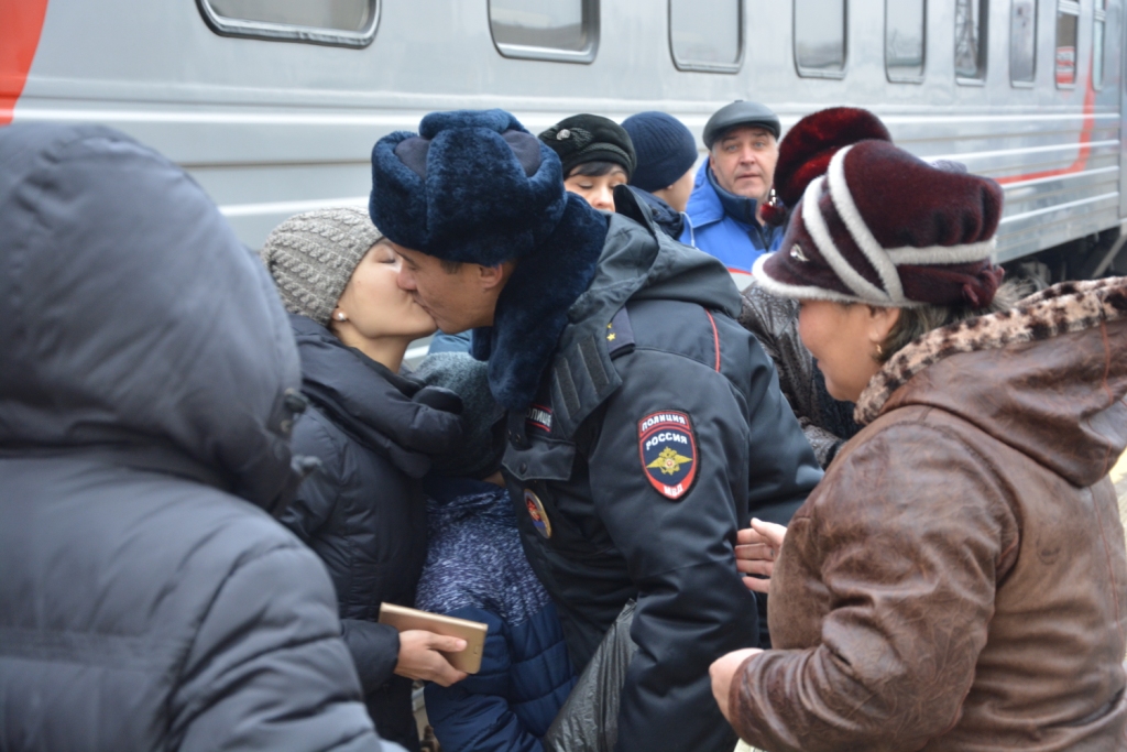 В день отправки на привокзальной площади состоялось построение личного состава. Проводить отряд прибыли начальник УМВД России по Оренбургской области генерал – майор полиции Михаил Давыдов и руководители подразделений Управления. Также проводить сотрудников прибыл первый вице-губернатор – первый заместитель председателя Правительства Оренбургской области Сергей Балыкин, а также представители духовенства.