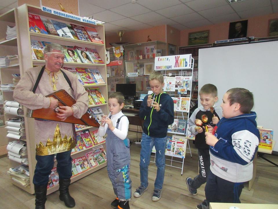 В гости к ребятам приехал известный оренбургский гусляр, поэт, музыкант, певец, Семкин Сергей Алексеевич. Он исполнил несколько песен под древнерусский инструмент - Гусли. провел мастер - класс игры на народных музыкальных инструментах, которые мастерит сам. Помимо гуслей, на которых он играет профессионально, собравшиеся в зале библиотеки, услышали голос жалеек — пастушьих дудочек. Жалейки у Сергея Семкина не только плачут, но и смеются весело, задорно.