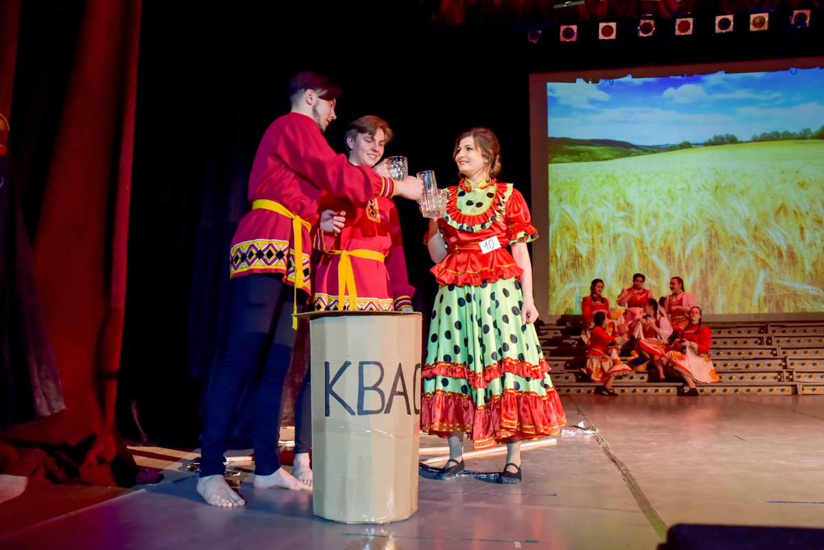 Кадры хроники, повествующие о военном лихолетье и героических поступках русской сестры милосердия Екатерины Бакуниной, сопровождали выступление студентки факультет филологии и журналистики Екатерины Пискаревой, покорившей всех своими хореографическими и вокальными данными. О бессмертном подвиге санинструктора Натальи Кочуевской, ценой собственной жизни спасшей во время Великой Отечественной войны бойцов, поведала Дарья Журба, представительница физического факультета.