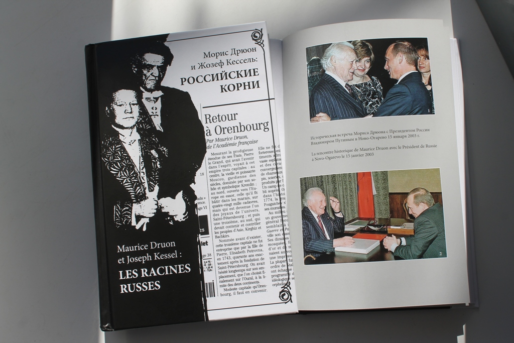 В эту пятницу, 20 апреля, в канун юбилея, оренбургская «Евразия» собирает друзей и поклонников творчества двух выдающихся «русских французов» в Москве, в крупнейшем книжном магазине страны – ТД «Библио-Глобус». На вечере, который начнется в 18.00, Оренбургское книжное издательство им. Г.П. Донковцева представит две новинки. «Морис Дрюон и Жозеф Кессель: Российские корни» – это российские страницы мемуаров Дрюона и биографии Кесселя, воспоминания об историческом приезде Дрюона в Оренбург в сопровождении Виктора Черномырдина, это знаменитая статья в ведущей французской газете «Фигаро» «Возвращение в Оренбург», где Дрюон вспоминает о поездке и делится мыслями о России, о Владимире Путине, о взаимоотношениях России и Европы… Выход этой книги в свет стал возможен благодаря поддержке бывшего вице-губернатора Оренбургской области, а ныне проректора Российского государственного университета нефти и газа им. И.М. Губкина Сергея Горшенина. Ожидается, что и он, и другие участники визита Мориса Дрюона в Оренбург в 2003 году – корреспондент «Комсомольской Правды» Александр Гамов, фотолетописец всех встреч с Дрюоном Александр Стручков, помощник Виктора Черномырдина Евгений Белоглазов – расскажут гостям о выдающемся французе.