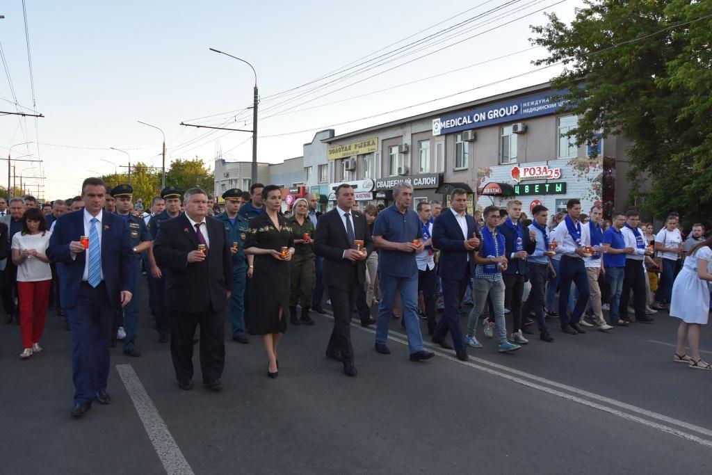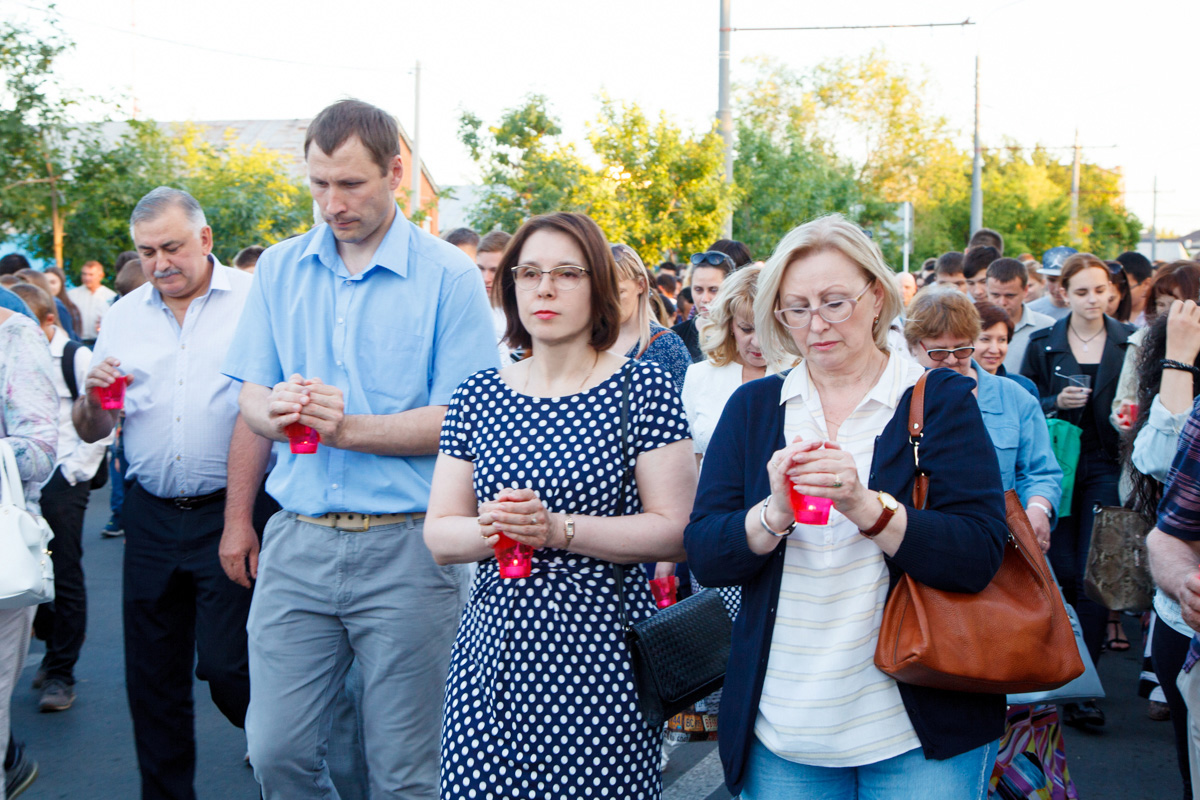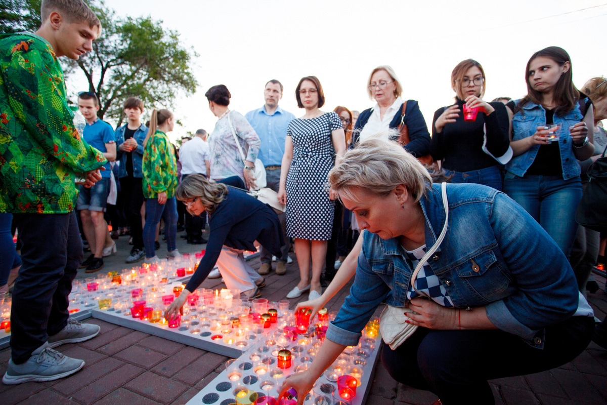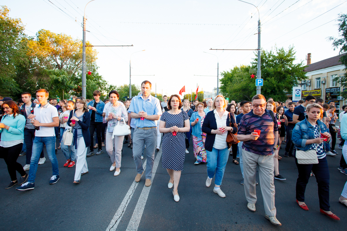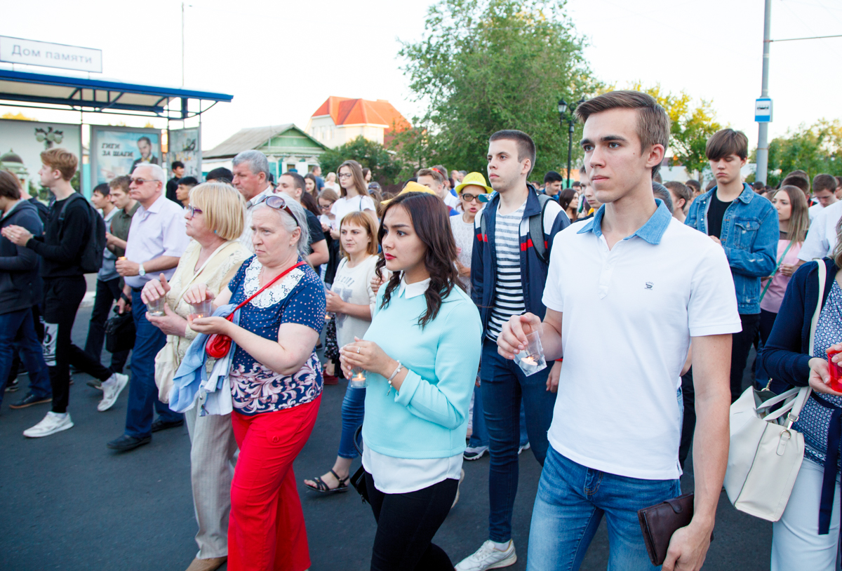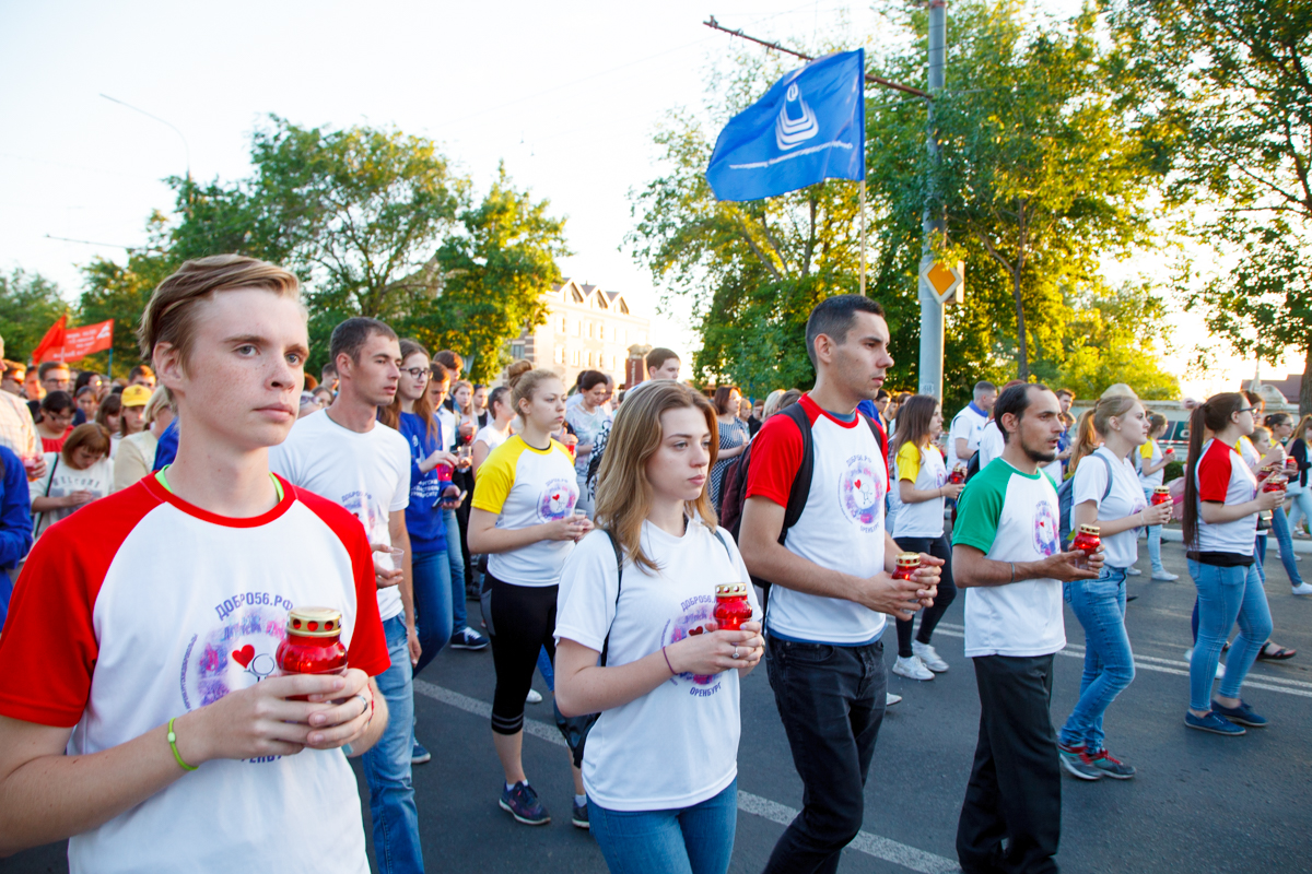 21 июня многотысячная колонна оренбуржцев, участники акции «Свеча памяти», молчаливо шли по проспекту Победы от Оренбургского госуниверситета к мемориальному комплексу «Вечный огонь» и стеле «Оренбург — фронту», неся в руках зажженные свечи. Звучали трогательные песни о войне, написанные в разные периоды истории страны – от «Журавлей» Марка Бернеса до «Красной стены» Александра Розенбаума.
