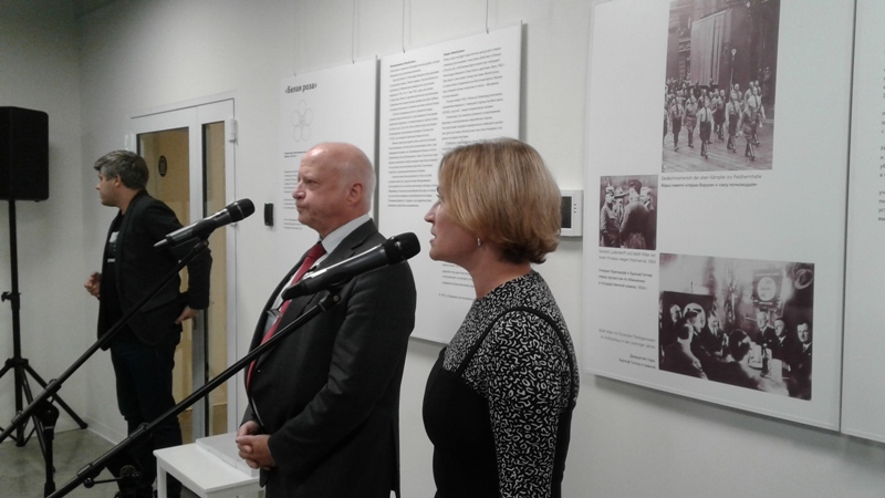Совместная российско-германская выставка "Белая роза" одноименного мюнхенского фонда и Оренбургского благотворительного фонда "Евразия" начала работу в Екатеринбурге в многофункциональном комплексе "Ельцин-Центр". По предложению генерального консула Германии в Екатеринбурге Штефана Кайля, ее открытие было приурочено ко Дню Германского единства 3 октября.