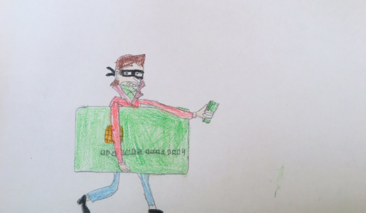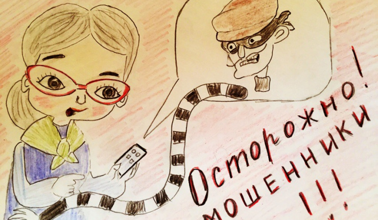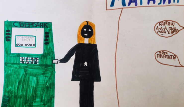 Также на рисунках дети используют слоганы: «Мама, мошенники ждут наших денег. Береги данные банковских карт и из СМС», «Звонит неизвестный и просит сообщить данные с карты и из СМС из банка. Знай это мошенники. Береги наши деньги!», «Мошенник хитер. Ему нужны наши деньги!».